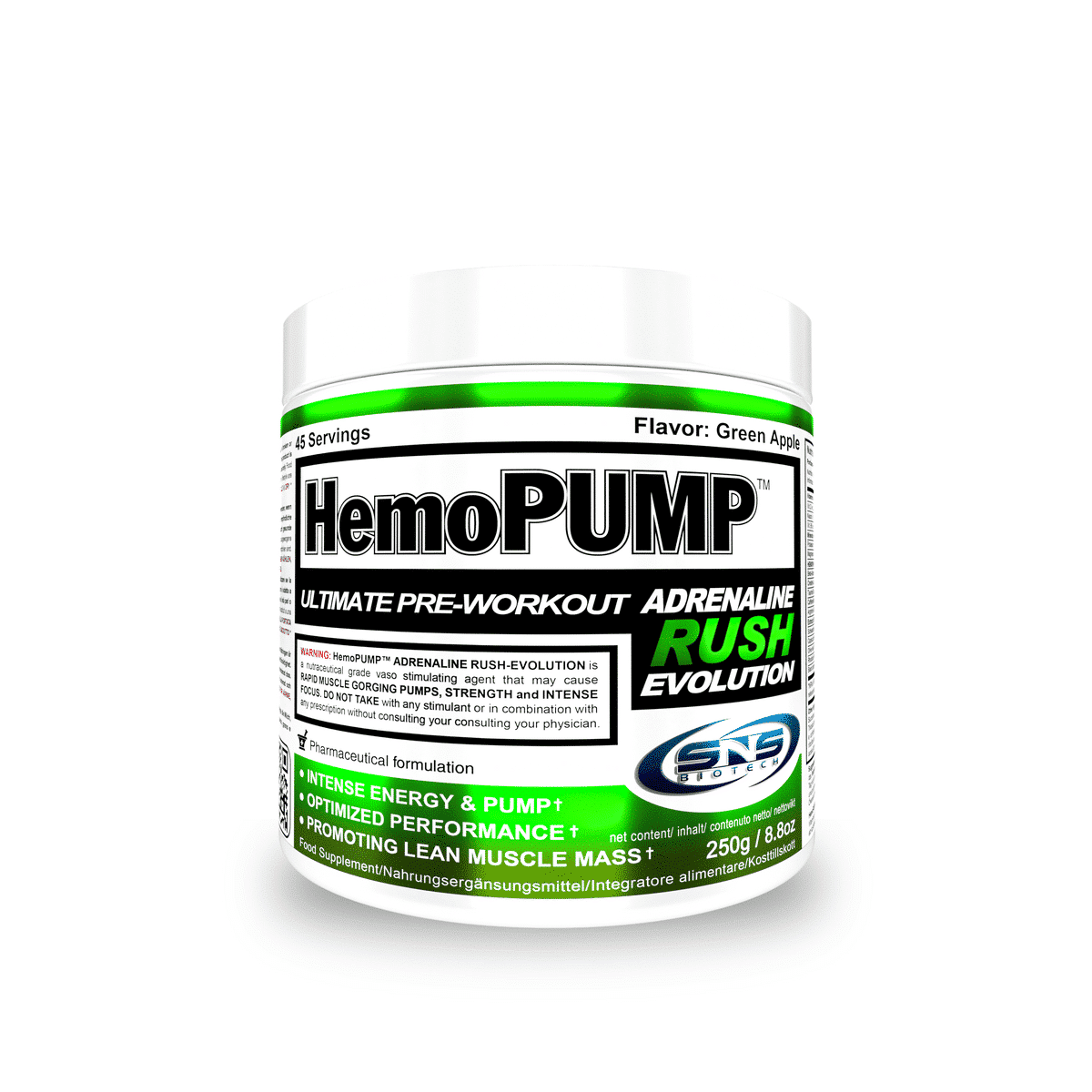 Hemopump Adrenaline Rush fra SNS Biotech gir ekstrem styrke, pump, fokus, energi og adrenalinboost.