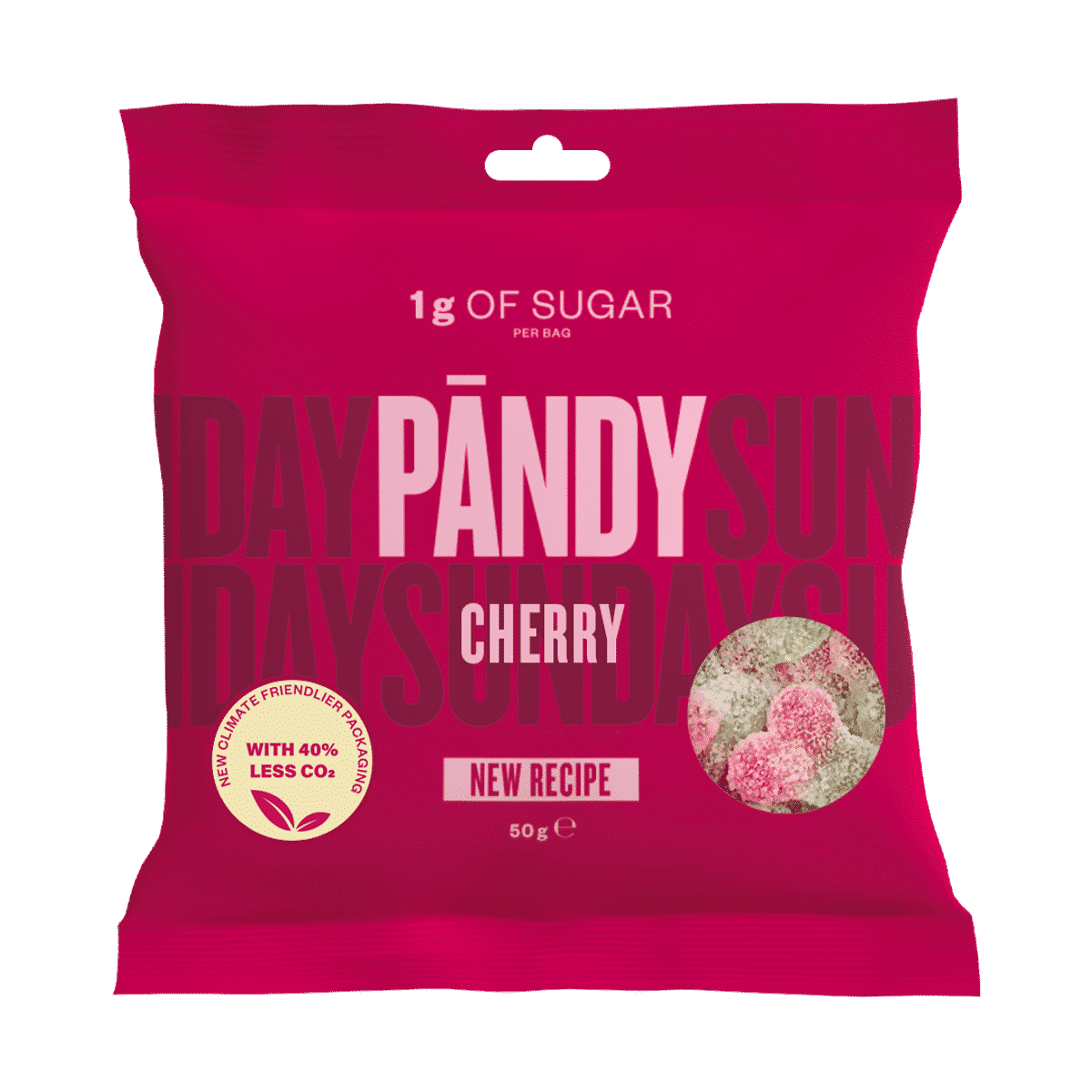 ØnskelisteGelëgodteri uten tilsatt sukker med smak av kirsebær.