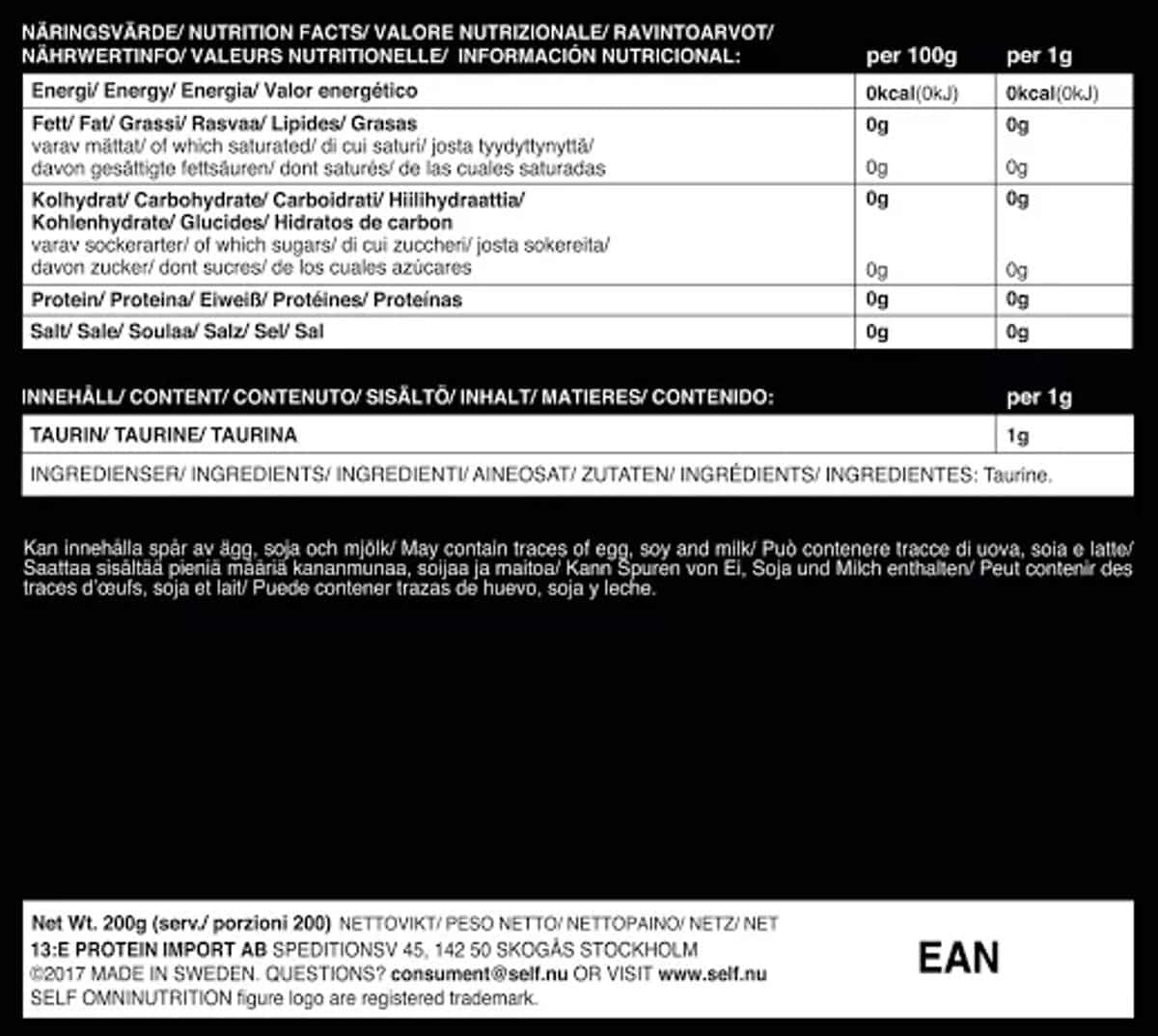 Taurin er den vanligste intracellulære aminosyren. Store mengder taurin er tilgjengelig i hjernen, netthinnen, hjertet og blodkorpuskler, som kalles trombocytter. Det støtter nevrologisk utvikling og hjelper til med å regulere nivået av vann og mineraler i blodet, og er en kraftig antioksidant (forhindrer skader forårsaket av frie radikaler). Taurin hjelper kroppen med å absorbere og omdanne fett til energi. Taurin er til stede i animalske produkter, og kroppen kan produsere taurin, men under fysisk og psykologisk stress kan kroppen ikke produsere den nødvendige mengden, derfor er det viktig å supplere med taurin. Optimale taurinnivåer fremmer kontraksjonen av muskelfibre, og forbedrer dermed atletisk ytelse, og holder hjerte og blodkar i god stand. Hjelper med å fjerne melkesyre, som er stoffet som forårsaker følelsen av smerte under intensiv trening. Taurin øker produksjonen av signalstoff GABA, som er avgjørende for å kontrollere toppene av kortisol og adrenalin. Taurin har en effekt som ligner på insulin, noe som forbedrer transporten av glukose og andre aminosyrer i cellen. Noen vitenskapelige resultater har vist at taurin kan redusere tretthet og har fordeler i varmeregulering (bidrar til å stabilisere kroppstemperaturen under fysisk aktivitet). Taurin fremmer transport av andre aminosyrer og glykogen i muskelceller; cellene blir ekstremt hydrerte og det kan fremme proteinsyntese og derved hemming av muskelkatabolisme, noe som fører til utvikling av muskelmasse og styrke.